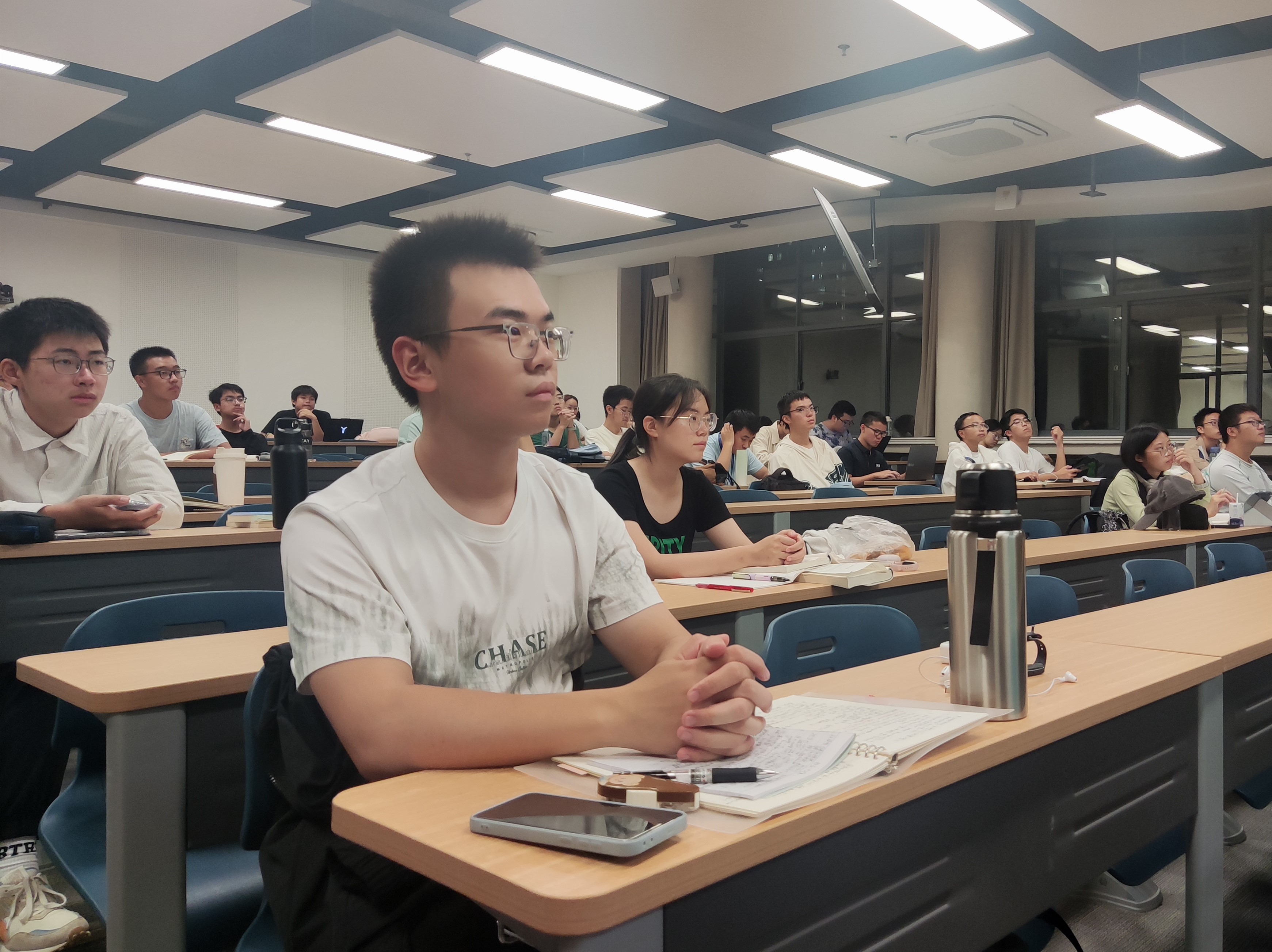 首先,2022级优秀学长查鑫蒙为同学们分享学习经验。在基础课程学习方面,查鑫蒙讲解数学与物理基础的重要性,并分享了高效听课与自主复习的方法。关于科研入门,他建议同学们主动关注学院官网信息,积极与导师沟通,尽早了解课题组的研究方向。对于大家普遍关心的推免流程,查鑫蒙学长细致讲解了政策要点、双向选择机制以及各阶段的注意事项。此外,他还就考试准备、竞赛参与等话题提供了宝贵的建议。
