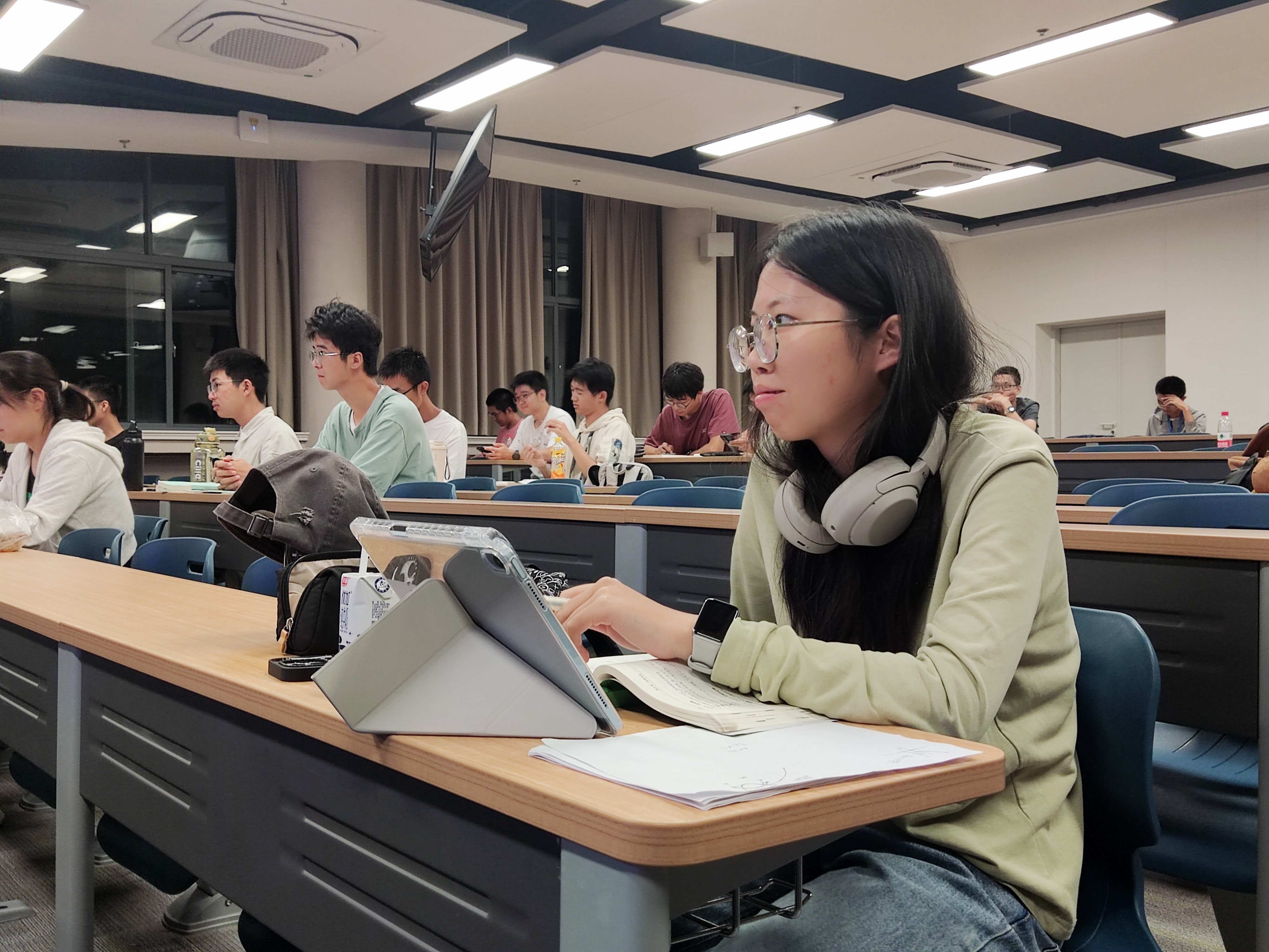 在互动环节,同学们踊跃发言,现场气氛热烈。黄晓旻提问:“作为大一新生,我们如果想为将来的推免做准备,现在应该重点关注什么?”查鑫蒙强调了保持优异绩点是基础,同时鼓励大家积极参与感兴趣的科研项目或大学生竞赛,以提升综合竞争力。朱鸿博同学接着提问,如何平衡课业和科研时间。查鑫盟学长结合自身经历,建议首要任务是保证课业成绩,在此基础上利用寒暑假或学期中相对空闲的时间逐步接触科研。