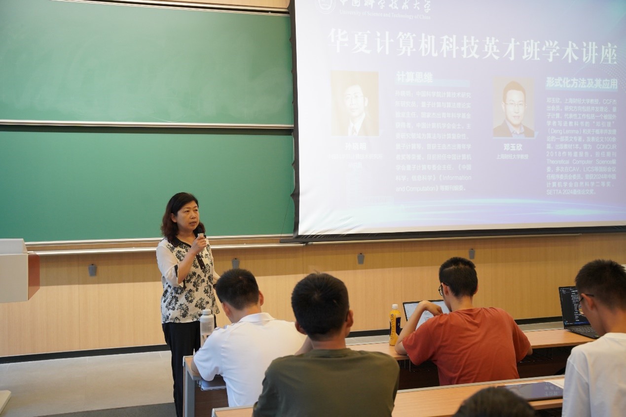 2025年10月9日,华夏计算机科技英才班成功举办了两场高水平的学术前沿讲座,特邀中国科学院计算技术研究所孙晓明研究员和上海财经大学邓玉欣教授作为主讲嘉宾。讲座聚焦计算机科学的核心思想与关键技术,分别围绕“计算思维”与“形式化方法及其应用”两大主题展开,旨在开阔英才班学生的学术视野,激发科研兴趣,领略计算机科学的深度与魅力。本次活动由英才班管理团队田野老师主持,负责人张昱老师及英才班同学参会。