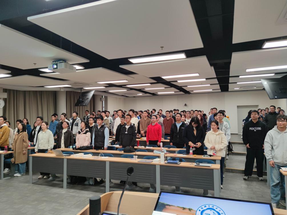互动环节中,新生们围绕 “如何平衡专业课学习与竞赛准备”“科研入门选择什么方向更易上手”“推免与出国深造的时间节点如何规划” 等实际问题积极提问,四位学长结合自身经历逐一解答,现场交流氛围热烈。活动最后,全体参会人员齐唱校歌《永恒的东风》,分享会圆满结束。