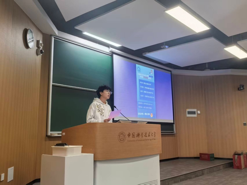 学院优秀毕业生代表、北京大学2025级博士研究生何纯宇同学以本科四年的时间轴为主线,系统梳理了推免过程中的关键任务节点。他从课程成绩的稳步提升、科研项目的积极参与,到推荐信的高效获取与面试环节的充分准备,逐一展开讲解。他特别提醒大一新生,要高度重视每一门基础课程的学习成绩,尽早参与科研训练,为未来积累扎实的学术经历。此外,他深情回顾了自己的本科成长生涯,表达了对母校和学院的深深眷恋,希望学弟学妹们努力学习、永攀高峰,展现了科大学子的科大情怀。
