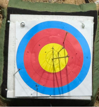 随着一轮一轮的接替射击,箭靶上以及箭靶外各处都遍布了同学们的杰作,此情此景不禁令我想起古代战争中万箭齐发的场景,真可谓壮观不已!