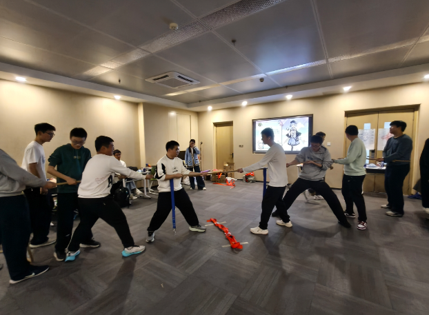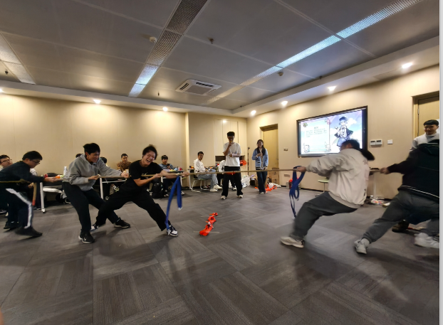 晚会尾声,以寝室为单位的拔河比赛激烈开赛。参赛选手紧握长绳、齐心协力,场外加油声、呐喊声此起彼伏,充分展现班级凝聚力与向心力。