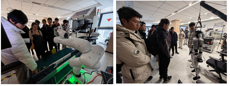 在实验室参访环节,师生们在沉浸式交流中先后走进可信智能软件、可重构工厂自动化系统、工业智能设计技术与仿真系统、工业智能芯片与系统四大科研团队的工作现场。科研人员通过现场演示、原理拆解等方式,展示了多项前沿成果。同学们围绕技术应用场景、研发核心难点等问题与科研人员深度互动,让这场参访成为一堂生动鲜活的“实践大课”。