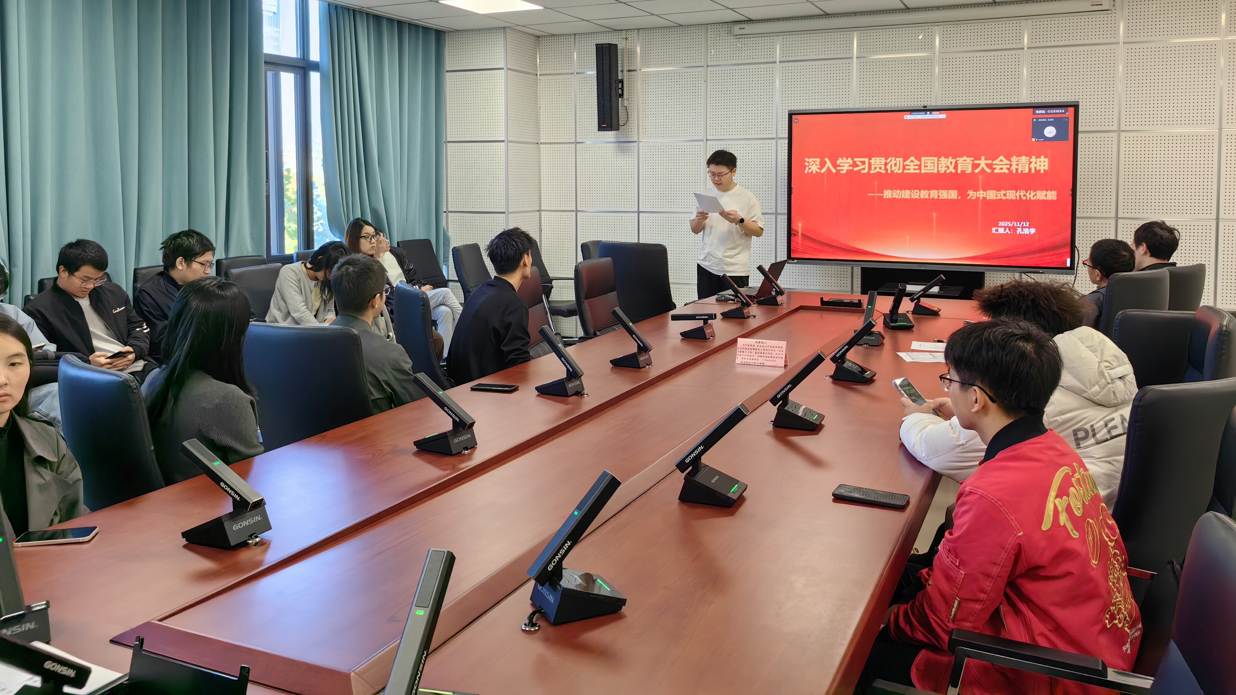 为进一步贯彻落实习近平总书记关于教育的重要论述,深化全体党员对教育强国战略的理解,2025年11月12日下午,计算机学院研究生高性能第1党支部在高新区1号学科楼B207会议室举行了主题党日活动。本次活动紧扣全校师生党员第二次集中党课的培训内容,结合党的二十届四中全会精神,进一步深化了全体党员对教育强国建设战略的学习和落实。
