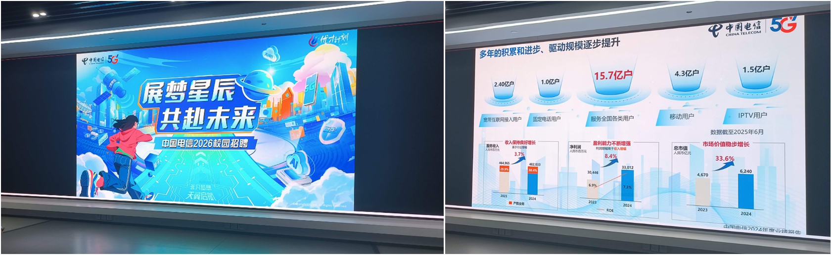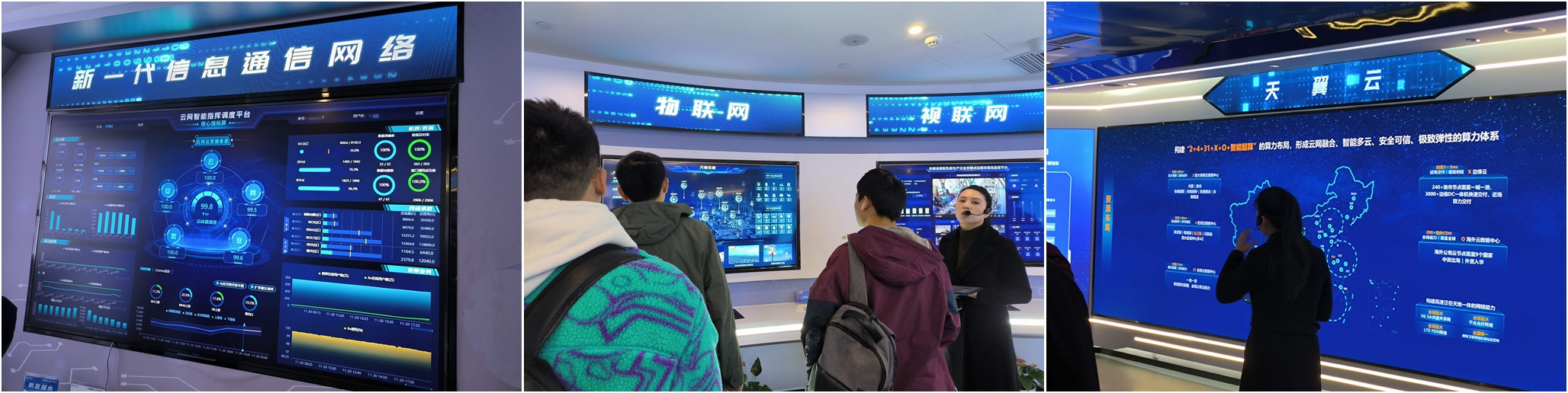 随后,大家来到信息化演示区,依次参观移动网、宽带网、卫星网、物联网、视联网等展板与实时系统,听取讲解员对天翼云资源布局的介绍,直观感受空天地海一体化网络的整体架构与关键能力。