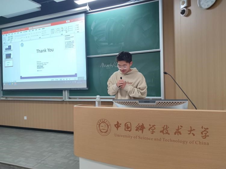 其次,聚焦科技创新实践,班级请到了在RoboGame机器人大赛中荣获二等奖的2023级本科生赵博翔同学。他不仅展示了其团队设计的机器人作品,更生动讲述了备赛过程中如何将理论知识应用于实践、如何解决技术难题、如何进行团队协作的真实故事,极大地激发了同学们对专业实践和学科竞赛的兴趣。