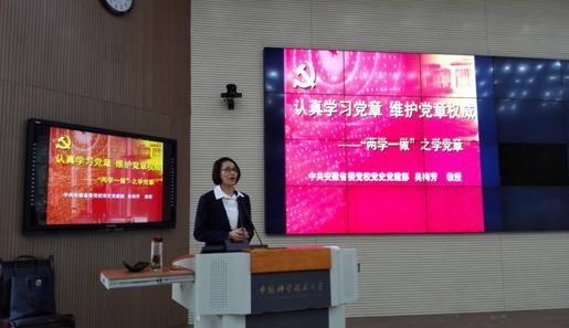 为推动学院“两学一做”学习教育的开展, 计算机学院党委5月28日下午在3117教室举办学院“两学一做” 首场专题党课,邀请中共安徽省委党校党史党建部副主任、我校马克思主义学院双聘教授吴梅芳为全院师生党员作“认真学习党章 维护党章权威”的专题辅导报告。全院教工党员、学生党员、入党积极分子共计260余人参加了专题党课的学习。报告会由院党委书记钱海主持。