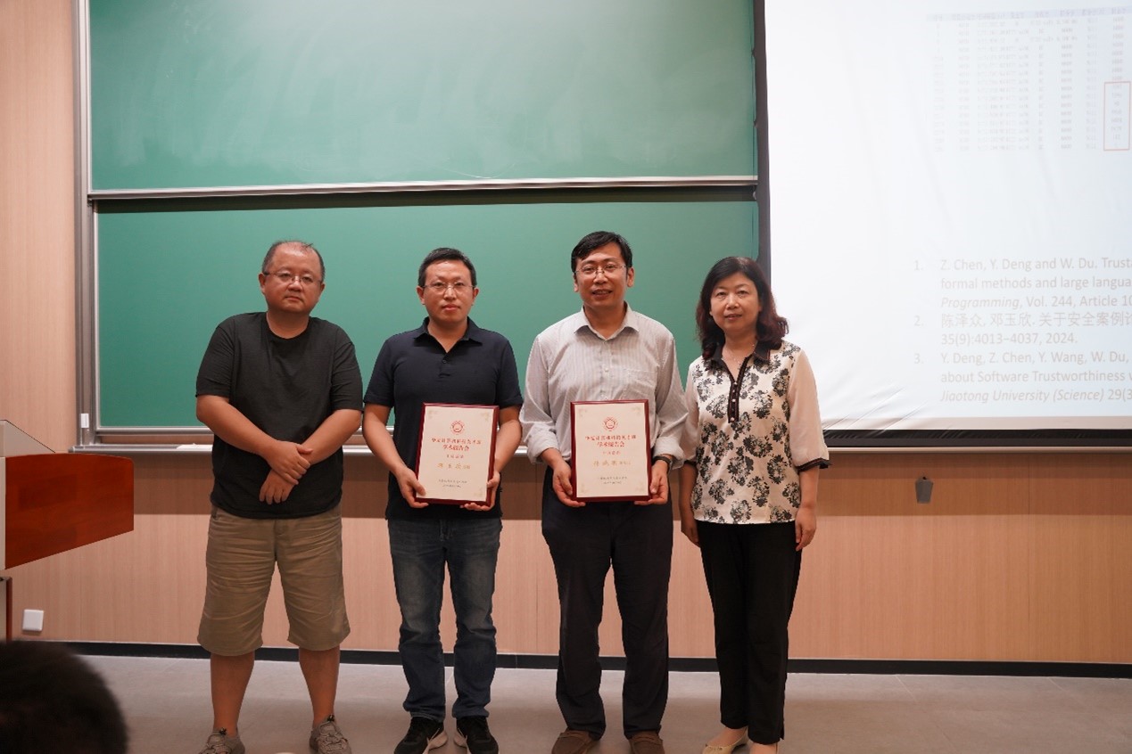 上海财经大学邓玉欣教授随后作题为《形式化方法及其应用》的学术报告。作为CCF杰出会员,邓玉欣教授在并发理论、量子计算等领域贡献卓著,其提出的“邓引理”(Deng Lemma)被写入国外教材,并著有概率并发理论的英文专著。他在报告中系统介绍了形式化方法这一关键领域,指出形式化方法是基于严格形式逻辑与数学语义,对计算机软硬件系统进行描述、建模、开发、分析和验证的技术体系。随着系统复杂性的日益增加,形式化方法在提升系统可靠性与安全性方面发挥着越来越重要的作用,已深入系统生命周期的各个阶段。邓教授详细讲解了形式化方法的基本体系、主要技术手段及当前主流工具与应用场景,并前瞻性地分享了基于大语言模型构建与验证安全案例的前沿技术,为同学们描绘了形式化方法与人工智能融合发展的新图景。