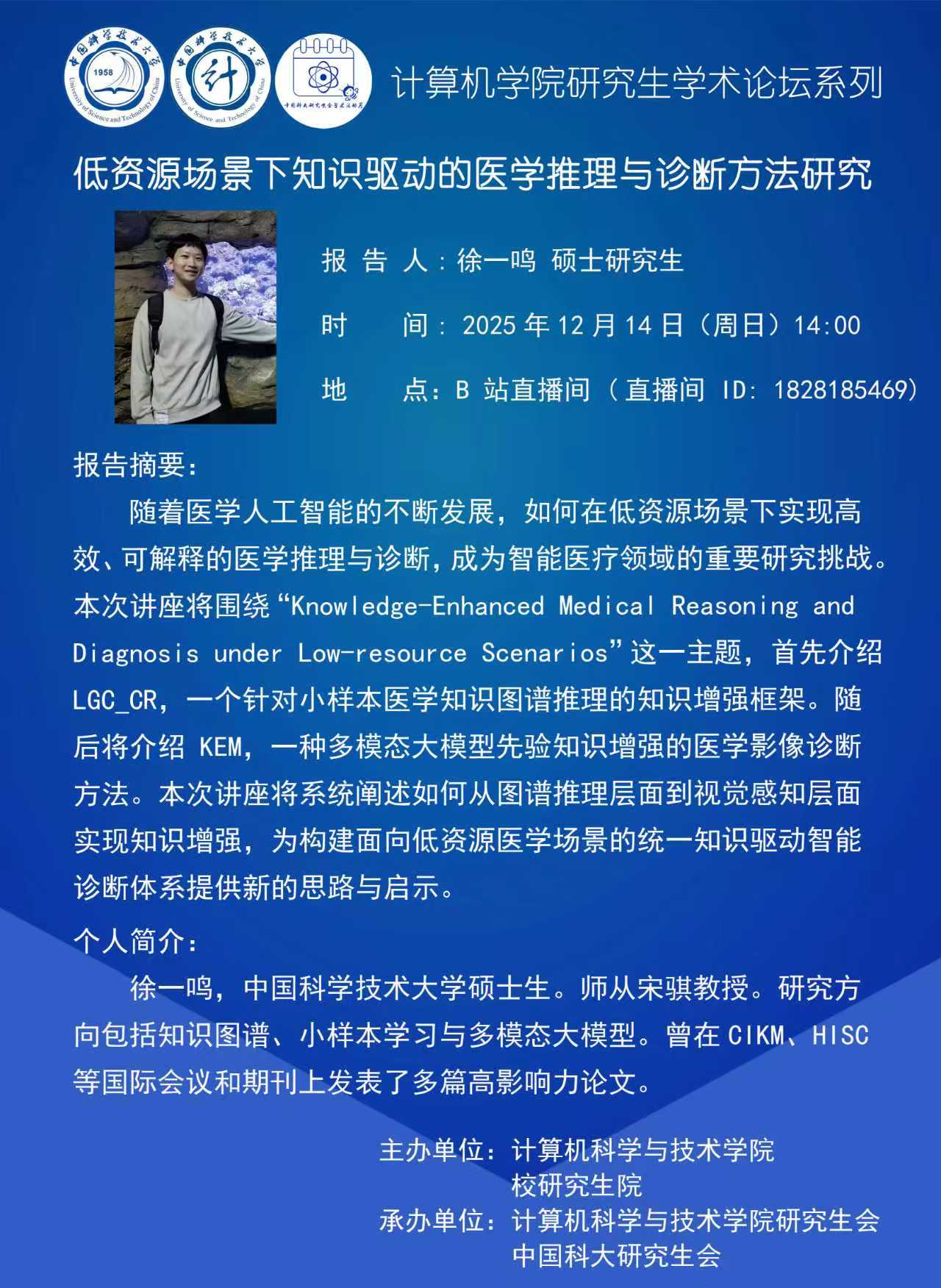 计算机学院研究生学术论坛系列——硕士研究生徐一鸣研究进展报告会