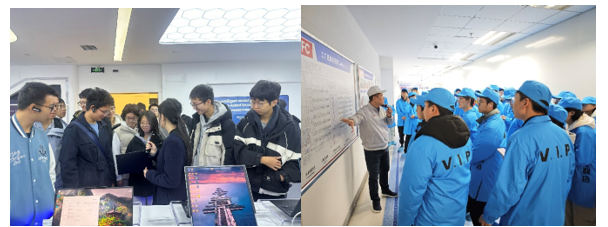 随后,队伍来到联宝电子科技有限公司。同学们依次参观企业展厅、测试实验室与智能化生产线,近距离观摩电子元器件的研发测试流程与规模化制造场景。实验室内,精密仪器与研发人员严谨专注的工作态度令同学们印象深刻;生产线上,自动化设备与人员协同作业的高效场面,生动展现了制造业数字化转型的强劲势头。通过与技术骨干交流,同学们对电子科技行业发展趋势与企业创新竞争力构建有了更深入的理解。