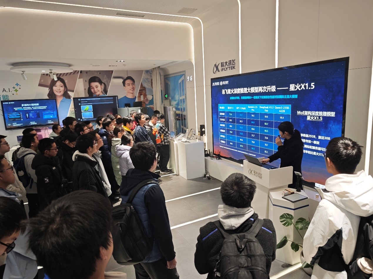 上午,研学首站抵达科大讯飞。在工作人员引导下,同学们沉浸式体验了星火认知大模型的核心技术成果。从教育领域的智能教学辅助系统,到医疗行业的AI诊断解决方案,从智慧城市精细化管理平台,到工业制造中的智能质检技术,大家全方位了解了人工智能在多领域的深度应用与落地实效。通过现场演示与互动交流,同学们深入感知企业技术演进路径与产业赋能实践,对“科技改变生活、创新驱动发展”形成更直观的认识,并围绕技术研发、场景拓展等话题与技术人员展开热烈讨论。