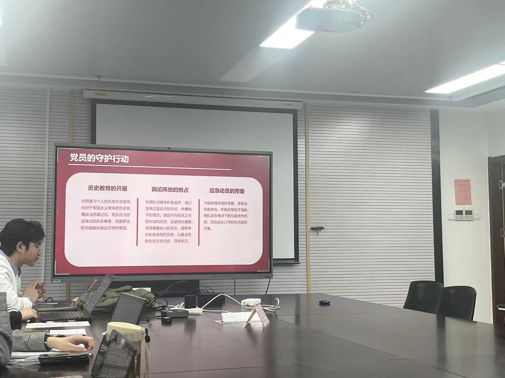 观影结束后,朱嘉安同志于11月26日支部党员大会上,以“从731到高市:战争幽灵与和平警钟”为题讲授专题党课。党课紧扣主题,深度揭露了影片《731》所还原的侵华日军反人类罪行的历史真相;同时结合近期台湾问题相关政治摩擦,朱嘉安同志深刻警醒全体党员:日本部分势力漠视历史、对台湾抱有图谋不轨的狼子野心,和平年代更需警惕历史重演的风险。