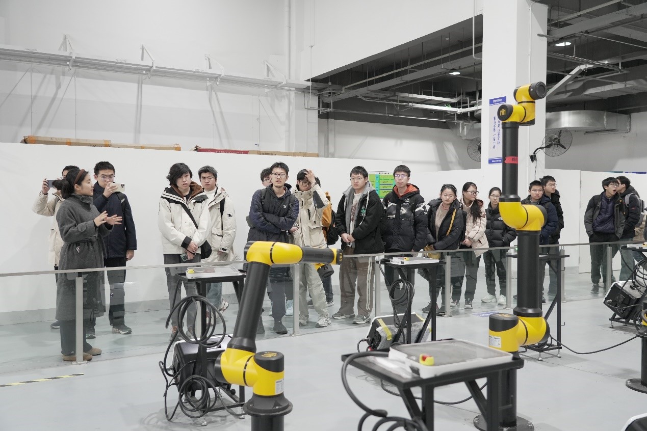 下午,在中国科大江苏校友会的陪同下,访学团队转场前往校友企业江苏集萃智能制造技术研究所有限公司。在基地参观过程中,师生们先后走进集萃智造生产调试车间、企业展厅等场所,近距离观摩了集萃智造在协作机器人、无人车等领域的核心技术成果。一系列聚焦实际应用场景的技术突破,让师生对集萃智造“技术突破 — 场景落地 — 生态构建”的发展路径建立了直观认知。