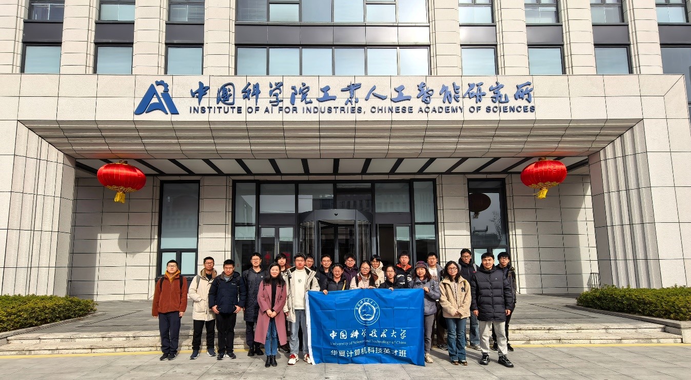 2026 年 1 月 10 日,华夏计算机科技英才班师生赴南京开展访学实践活动。访学活动由“华夏班”负责人张昱老师带队,徐林莉、陈海超两位老师共同参与,师生们先后走进中国科学院工业人工智能研究所与江苏集萃智能制造技术研究所有限公司,通过实验室参访、技术交流、成果分享等多环节互动,近距离感受工业智能领域前沿动态,切实深化产学研协同育人成效。